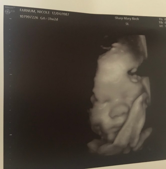 In here I am monitored every 8 hours, have blood draws every 3 days, have an IV that has to be flushed frequently, get visits from doctors, nurses, social workers, etc. and get weekly ultrasounds. Nora hates being on the monitor and kicks it off, so she has become known as the wild baby on the floor. Not sure where she gets that stubbornness… 😬😉🤷♀️ I love ultrasound days because we get a glimpse of her precious face, if she allows it. Often times she turns her back or covers her face. I think we have a sassy little girl on our hands, but I’ll take it.